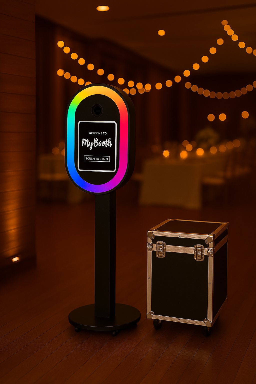 The Digital Experience: Sleek. Social. Seamless. "Our Digital Booth is the ultimate party starter. Designed for the modern host, this slim, ring-lit booth focuses on high-quality digital content that’s ready to share instantly. No waiting for prints—just pure, unfiltered fun delivered straight to your phone. Whether it’s a high-energy GIF, a sleek Boomerang, or a classic glam-filter portrait, your guests will be blowing up their feeds before the party is even over."